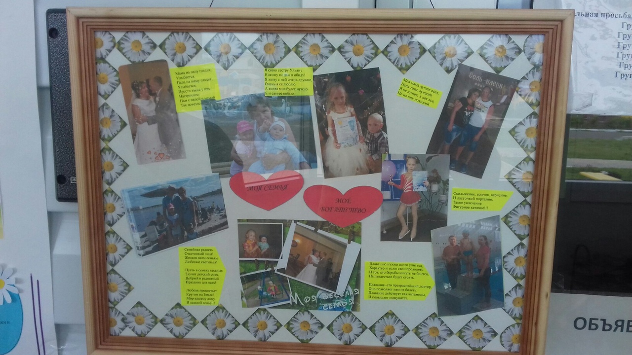 В рамках недели посвященной дню семьи прошла выставка коллажей с детскими высказываниями-описаниями на тему "Моя семья" -