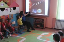 Воспитатель средней группы Юзыкаеа Л.Б. провела с детьми беседу "Этот необъятный космос".