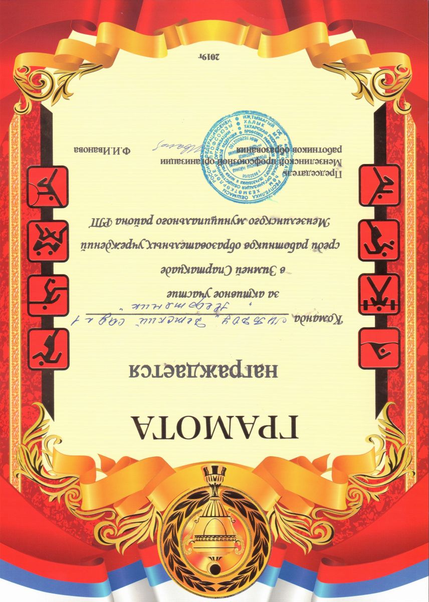 Грамота 2 место район.конкурс "Мама, папа, я - спортивная семья"