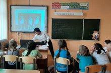 С учащимися 1-3 классов была проведена классный час на тему"Край родной, навек любимый". Смотрели фильм о Мензелинске.