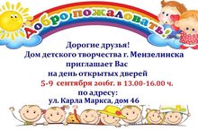 С 5 по 9 сентября 2016 года в Доме детского творчества пройдет День открытых дверей. Дом детского творчества – это необыкновенный, удивительный дом, куда спешит детвора, чтобы других посмотреть и себя показать, он крутится и вертится в ритме современной жизни, а приводят в движение его неутомимые, творческие, любящие детей педагоги дополнительного образования. Они помогают детям раскрыть свои таланты, найти интересное дело. Ждем ребят и родителей в мир творчества и искусства!