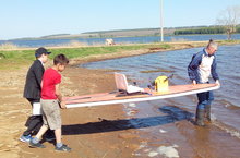 Наступил тот момент когда ребята с Николаем Сергеевичем завершили работу по созданию катамарана. Весь учебные год ребята разрабатывали схемы катамарана, сооружали каркас, делали его из пенопласта, дерева, пластика, и вот катамаран запустили на воду. Самодельный катамаран и на полноводной реке, и небольшом озере, и на пруду станет не только забавой, но и полезным приспособлением. Использовать свой самодельный катамаран ребята могут для транспортировки небольших грузов, а также плавать для осмотра садков, в которые ловится рыба. Если создать флотилию таких судов, то вполне можно устраивать небольшие соревнования на скорость, либо по фигурному вождению, они же станут отличным средством для совершения небольшого туристического похода. Молодцы ребята!