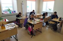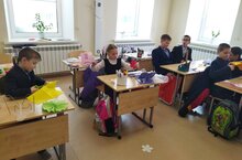 Воспитанники Дома Детского творчества на базе МБОУ " Николаевская ООШ имени С.А.Кузнецова" кружка "Рукоделочка" за творческим процессом изготовления игольницы из фетра.