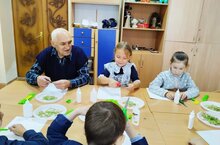 В рамках декады Пожилого человека и с целью укрепления связи между поколениями подопечный Мензелинского дома-интерната Горбунов Григорий Васильевич посетил мастер класс творческого объединения "Кудесники". Под руководством педагога Дома детского творчества Петраевой Людмилы Леонидовны вместе с ребятами он выполнил аппликацию из природных материалов "Осенний цветок".