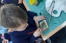 Воспитанники творческого объединения "Декоративная роспись" педагога Гилязетдиновой О.А. на занятиях кружка рисуют символ наступающего года.
