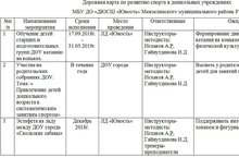 Дорожная карта МБУ ДО «ДЮСШ «Юность» по развитию спорта в дошкольных учреждениях 06.09.2018