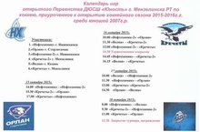 Календарь игр открытого Первенства ДЮСШ "Юность" г. Мензелинска РТ по хоккею, приуроченное к открытию хоккейного сезона 2015-2016 г.г среди юношей 2007 г.р 13.10.2015