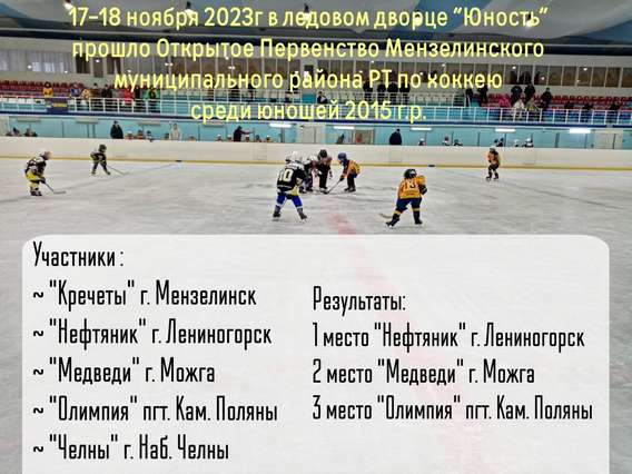 Открытое Первенство Мензелинского муниципального района РТ по хоккею среди юношей 2015 г.р.