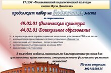 Продолжается набор на 1 курс по специальностям "Физическая культура" и "Дошкольное образование"