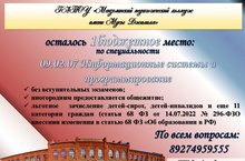 Объявлен прием на 1 бюджетное место 05.09.2022
