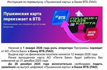 Инструкция по перевыпуску «Пушкинской карты» в Банке ВТБ (ПАО) 12.11.2025