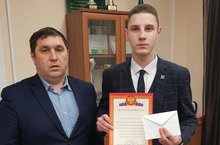 Мордвинову Владиславу, студенту 3Б группы, координатору Общественного центра ТРО "Волонтеры Победы" на базе ГАПОУ "Мензелинский педагогический колледж имени Мусы Джалиля" начальник Отдела молодежи Мензелинского муниципального района РТ Хизбуллин Ф. Г. вручил благодарственное письмо за содействие в развитии добровольчества в Мензелинском муниципальном районе, организацию и проведение мероприятий в год 75-летия победы в Великой отечественной войне и 100-летию ТАССР.