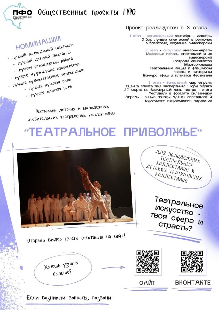 Фестиваль «Театральное Приволжье» – это возможность окунуться в атмосферу настоящего творчества, получить бесценный сценический опыт и заявить о себе на окружном уровне.