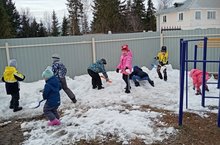 Наши воспитаннники участвовали в республиканской акции "ЭКОвесна 2021" очищали участок от снега на своей территории