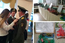 Школа готова к празднованию Дня Победы! Ни один школьник, учитель, родитель, технический персонал не остался равнодушным к этому замечательному празднику всего народа! В фойе школы оформлена выставка рисунков, макетов, газет, выполненная руками детей и родителей. Сколько фантазии, труда в этих работах! Активисты школы провели акцию "Георгиевская ленточка".