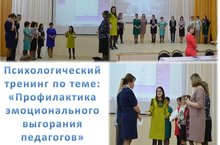 Сегодня педагог-психолог Данилова Э.И, приняла участие в Дне классного руководителя и провела психологический тренинг по теме: "Профилактика эмоционального выгорания педагогов".