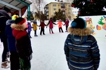 Сегодня ребята пришкольного лагеря "Родничок" в парке Победы организовали хоровод вокруг новогодней елки.