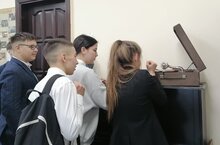 В нашем школьном музее есть уникальная вещь, которая во время экскурсий не оставляет равнодушным никого. Это патефон. И на этот раз ученики 10а класса не оставили его без внимания. Они увидели, как он заводится, прослушали пластинки.