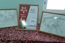 В школе организован уголок Победы. Каждый, кто входит к нам в школу, может увидеть сколько дней осталось до Великого Праздника. Среди классов организованы конкурсы макетов, писем, газет и плакатов.