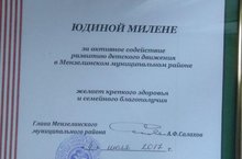 Благодарственным письмом Главы Мензелинского муниципального района была награждена ученица 9а класса Юдина Милена. За активное содействие развитию детского движения в Мензелинском муниципальном районе.