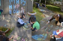 7 сентября 2015 года сотрудники молодёжного центра «Веста» провели акцию «Мир во всём мире!». Для учащихся 5 а класса они организовали занимательную игру и конкурс рисуноков на асфальте на тему «Нет войне!»