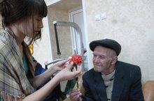 Участники проекта «Достижения молодых», школьная компания «Geronimo» в составе учащихся 7 классов: Хаматовой Р., Закировой Р., Кукаркиной Д., Ефремовой В. 7 мая поздравили жителей Дома милосердия с наступающим праздником – Днём Победы и провели мастер-класс по изготовлению гвоздики – символа мужества и доблести военного времени. Так совместная работа подружила два поколения