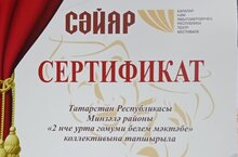 "Сәйяр" республика балалар һәм яшүсмерләр театр фестивале сертификаты 2 нче урта гомуми белем бирү мәктәбенә тапшырылды/ Сертификат республиканского театрального фестиваля детей и юношества «Сайяр» был вручен средней школе №2 г. Мензелинска