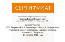 «Татарский язык и литература, история: прошлое, настоящее, будущее»/ «Татар теле һәм әдәбияты, тарих: үткәне, бүгенгесе, киләчәге» 29.10.2021