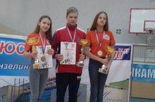 Учащиеся средней школы №2 Комиссаров Евгений, Анна Новикова, Аделина Гатиатова - победители и призёры Первенства по плаванию Мензелинского муниципального района на призы ООО "Мензелинское АТП"