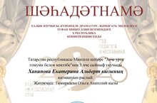 МӘКТӘБЕБЕЗНЕҢ 3НЧЕ Б СЫЙНЫФЫ УКУЧЫСЫ ХАНИПОВА ЕКАТЕРИНА ХАЛЫК ЯЗУЧЫСЫ, КҮРЕНЕКЛЕ ДРАМАТУРГ, ҖӘМӘГАТЬ ЭШЛЕКЛЕСЕ ТУФАН МИҢНУЛЛИН ИСЕМЕНДӘГЕ Х РЕСПУБЛИКА КОНФЕРЕНЦИЯСЕНДӘ КАТНАШТЫ. УЛ АНДА ҮЗЕНЕҢ УКЫГАН ӘСӘРЕННӘН ӨЗЕКНЕ ЯСАДЫ. КАТЯ “АВЫЛ ЭТЕ АКБАЙ” ӘСӘРЕННӘН БЕР СЮЖЕТНЫ КҮРСӘТТЕ, БУ – УКУЧЫЛАРНЫҢ ЯРАТКАН ГЕРОЕ АКБАЙ ИДЕ. КАТЯ ШӘҺАДӘТНАМӘ БЕЛӘН БҮЛӘКЛӘНДЕ.