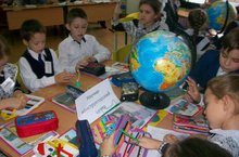 Сегодня 27 ноября началась декада начальных классов. Во время декады пройдут олимпиады, открытые уроки, различные мероприятия. Первыми свой урок показала учитель начальных классов Газизова Р.А. Во 2В классе прошел открытый урок по предмету окружающий мир. Ученики на один урок превратились в научных сотрудников исторического центра, научно-конструкторского и географического центра. На уроке дети познакомились с такими понятиями, как: меридиан, параллель, материки. Узнали сколько на Земле океанов, когда появился первый глобус. Сами изготовили модель глобуса, работали впервые на контурных картах.
