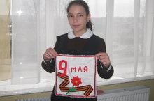 Учащиеся школы принимают участие в мероприятиях, проводимых к Дню Победы. Вот и ученица 5 б класса Терешкина Анастасия изготовила аппликацию на ткани к 9 Мая.