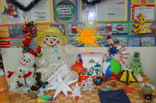 В школе проходит конкурс на лучшую новогоднюю игрушку. Учащиеся начальных классов приняли активное участие в конкурсе. Игрушки выполнены из бросового природного материала.