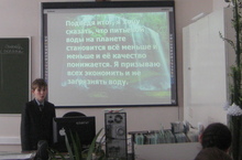 В нашей школе продолжается работа в рамках Года экологии. Учащиеся 6Б класса подготовили презентации на тему «Загрязнение природных вод и их охрана». Бочкарева Надя рассказала об источниках загрязнения воды и их влиянии на животный мир нашей планеты. Презентация Донской Нади посвящалась последствиям, к которым приводит загрязнение природных вод радиоактивными, химическими и другими видами отходов. Хайруллин Рафаэль призвал ребят бережно относиться к воде – закрывать краны в умывальниках, не оставлять мусор на пляжах. Работы других учеников были посвящены разнообразным водным объектом и путям их охраны о загрязнении.