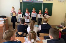 Учащиеся 2в класса подготовили линейку о пионерах –героях, удостоенных звания Героя Советского Союза: Лёня Голиков, Марат Казей, Валя Котик и Зина Портнова.
