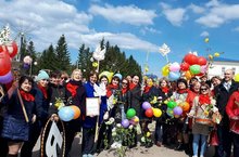 Сегодня наша школа, полным составом, приняла участие в демонстрации.