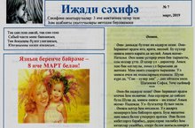 Вот и мартовский номер газеты «Иҗади сәхифә”, издаваемый учителями родного языка и литературы напечатан. Этот номер посвящен нашим мамам и бабушкам . Учащиеся написали много рассказов и стихотворений о самых близких и любимых. Также в этом номере в рубрике «Алдынгы укучылар» можно прочитать об ученице 3А класса Абдуллаевой Адиле.