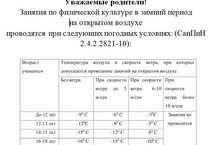Температура воздуха и скорость ветра, при которых допускается проведение занятий на открытом воздухе