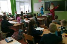 Родители 2б класса (кл. рук. Крючкова К.А.) проявили творческий интерес, переодевшись в костюмы Деда Мороза и Снегурочки, поздравили учащихся с новым годом. -