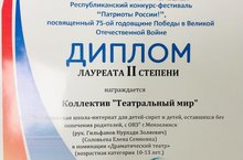 Нашему руководителю Гильфанову Нурхади Золяевичу вручили заслуженный Диплом лауреата II степени за участие коллектива обучающихся «Театральный мир». Так держать, ребята!