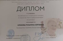25 нче февраль көнне 6 нчы сыйныф укучысы Климова Розалина Татарстан Республикасы язучылар берлеге Казан шәһәре Башкарма комитетының мәгариф идарәсе Казан шәһәренең “Адымнар –белемгә һәм бердәмлеккә юл” полилингваль комплексы” дәүләт автономияле гомуми белем учреждениесе Казан шәһәре Совет районының “Дәрвишләр бистәсе балалар иҗаты үзәге” өстәмә белем муниципаль бюджет учреждениесе оештырган “Сихәтләнү” Равилә Шамил кызы Шәйдуллина-Мурат иҗаты буенча икенче ачык әдәби бәйгедә катнашып кайтты. Ул “Равилә Шәйдуллина шигырьләрен сәнгатьле уку” номинациясендә икенче урынга лаек булды. Афәрин, Розалина. Алга таба уңышлар телибез сиңа. 03.03.2025