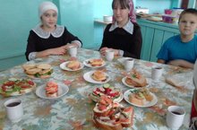 Николай бабай әле гармунда да сыздыра икән. Матур итеп көй сузып җибәрде. Ул кызын да гармунда уйнарга өйрәткән икән. Бик күңелле сөйләшүләрдән соң, әби безне өстәл янына дәште. Анда нинди генә тәмле ризыклар юк иде. Тәмле итеп чәй белән сыйлады.