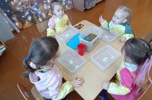 Работая в рамках по модулю экология с детьми младший группе провели опыты с песком, где дети рассматривали сухой песок поиграли с ней. Далее добавили воду и перемешивали сухой песок с водой.