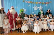 Сотрудники детского сада переодевшись в Деда Мороза и Снегурочку поздравили детей сотрудников находящихся в декретном отпуске .