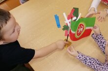 Учили с детьми,что означает цвета флага РТ и РФ, собирали флаг.