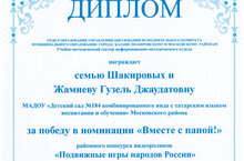 Шакировлар гаиләсен һәм төркем тәрбиячесе Гүзәл Җәүдәт кызын район күләмендә уздырылган бәйгедә җиңүләре белән котлыйбыз!