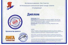 Проект Газизовой Эльвиры, Фатыхова Мухаммада и Хуснеевой Сафины "Йомшак уенчыклар" (руководитель воспитатель Зиятдинова Гульшат Ванситовна) - диплом участника.