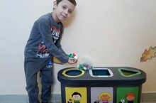 Ох, сколько радости! Ведь у нас появились контейнеры для сортировки вторичного сырья! Теперь будем разделять вторичное сырье грамотно. В зеленый треугольный контейнер-бумагу и картон, в серый квадратный контейнер-батарейки, а в жёлтый круглый-пластиковые крышечки!