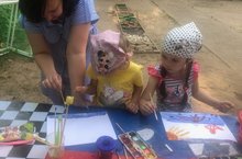 Рисовать цветными мелками, да еще не на бумаге, а на асфальте, – это счастье для маленького художника. Чтобы лето было солнечным по-настоящему, наши воспитанники попытались изобразить его таким, каким оно должно быть: с цветами, с ярким солнышком, с пляжем, морем, – в общем, так, как они хотели видеть настоящее лето, но только на асфальте мелом. Вооружившись цветными мелками, ребята с огромным удовольствием творили свои произведения. И даже тот, кто еще не умел рисовать, научился! Каждый почувствовал себя художником, который создает настоящие шедевры.