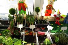 За окном ещё много снега и холодно, а в группе, на подоконнике, занимается весна. Здесь появился мини-огород, доставляющий в детском саду радость всем от, мала до, велика. Не изобилием славятся грядки на окне, а возможностью живого общения с растениями. Кто завел такой огород, непременно увлечется еще и экспериментированием, эко-дизайном.В общем, занятие увлекательное, полезное. Для чего нужен огород окне? Когда на окне живут чеснок, лук, огурцы, лимон - их разноцветье радует, снимает стрессы. К тому же они не только греют душу, но и полезны для здоровья. Если в помещении они растут, то вы забудете, что такое грипп. Выращивание овощей в детском саду полезно еще и тем, что оно развивает любознательность и наблюдательность у детей, помогает им лучше познать жизнь растений.